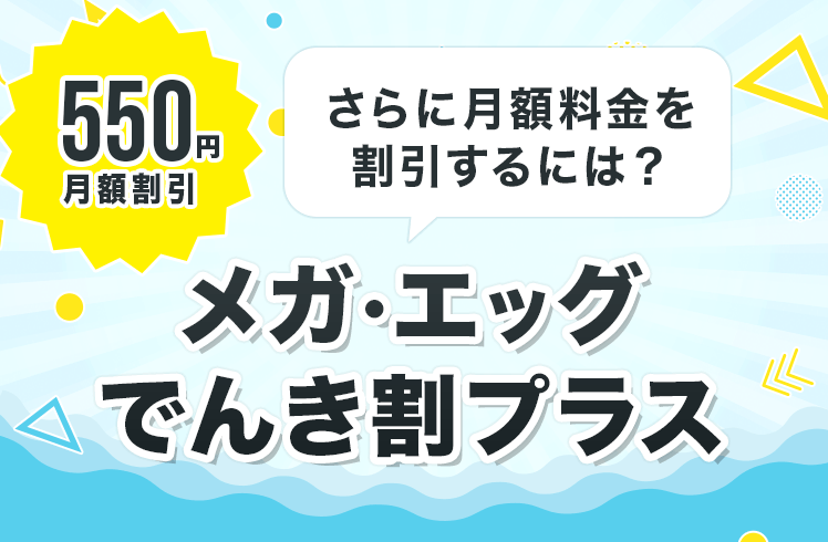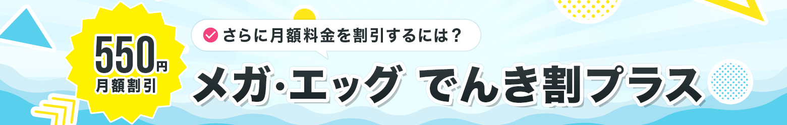 - *2 「光10ギガ新スタート割[1年間]1,030円/月割引」と 「メガ・エッグ でんき割プラス550円/月割引」の両方適用時。